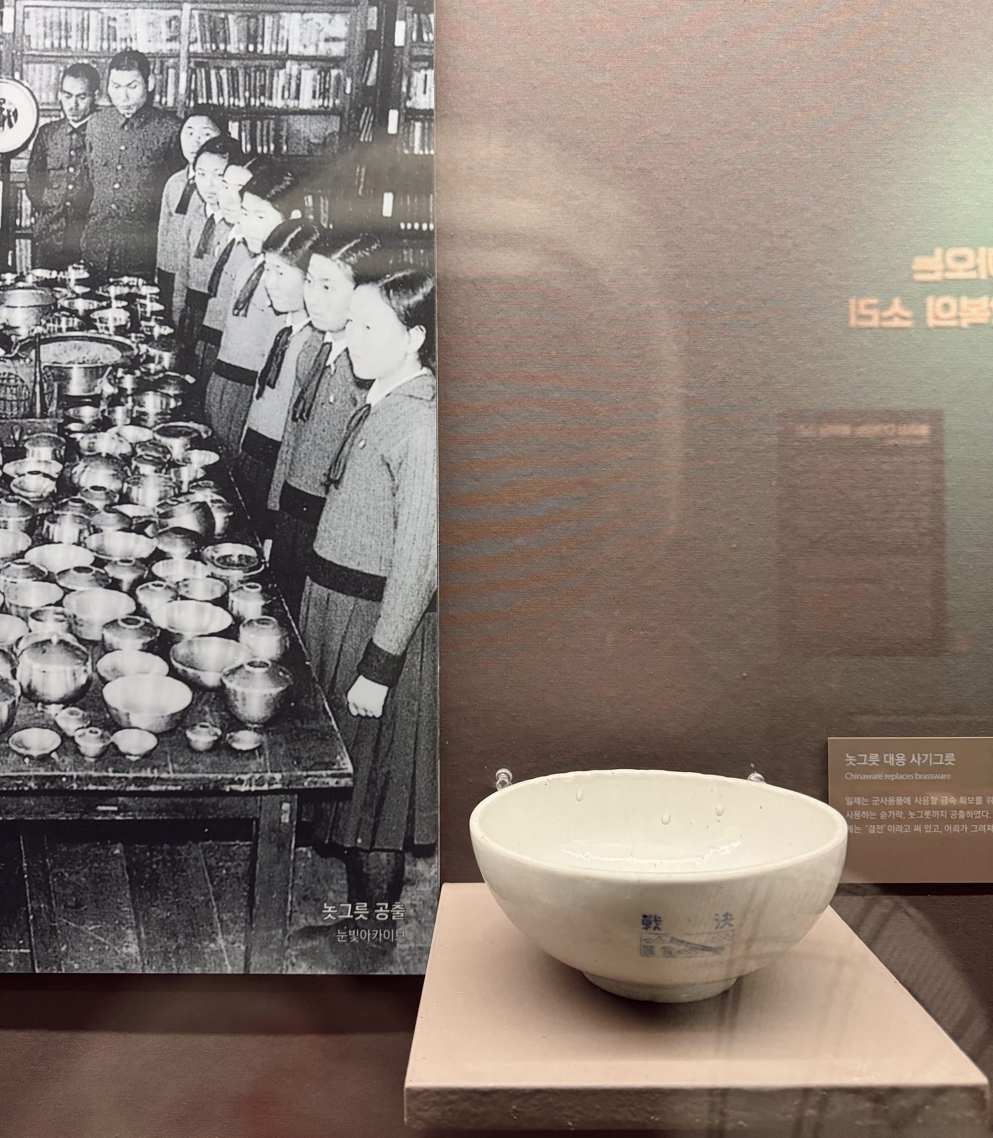 起初是以純然旁觀者的角度參觀,一邊用手機照照有趣的歷史文物,一邊聽著製作品質很好的中文語音導覽;直到看到一張韓國人排排站、被迫要將金屬器皿上繳給日本政府作為提煉太平洋戰爭武器的舊照片,我才猛然發現這個國家和台灣的遭遇竟如出一轍。