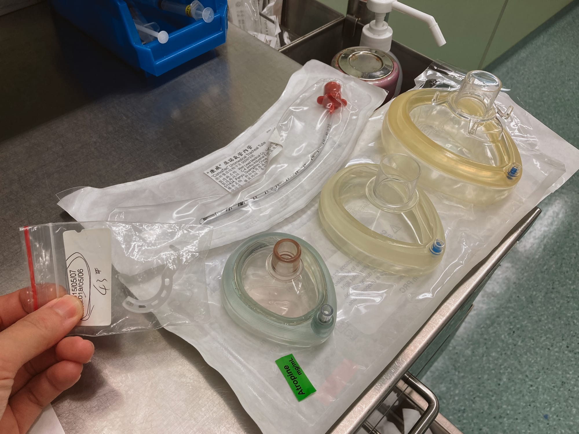 我們只有1號直式Miller blade,但應該足夠了。畢竟他主要困難的地方在於下呼吸道,而非是上呼吸道的異常。